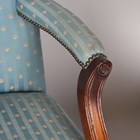 A pair of late 20th century George III Gainsborough style mahogany framed armchairs, height 100cm, width 68cm, depth 74cm.