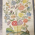 A mixed group of textiles, including a distressed 17th century silk and gilt thread embroidered panels, 95cm x 46cm, two 18th century painted silk panels, a Chinese silk embroidered tablecloth, a Liberty shawl and an Indian woven shawl.