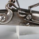 A fine and rare 18th century Royal Highland Regiment all-steel flintlock pistol by Isaac Bissell, circa 1760, with turned round barrel, barrel length 20cm, engraved 'R H R', line border-engraved lock and hammer, the lock engraved 'Bissell', left-side belthook fitting, ball-shaped trigger, ram's horn-shaped butt with turned ball finial, the grip with engraved flowerhead motifs, and turned all-steel pull-out ramrod.