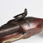 A fine and scarce early 19th century percussion pistol by Thomas Potts, Haydon Square, London, with round barrel, barrel length 15cm, and shaped steel lock, detailed 'T. Potts', Haydon Square', full-stocked in walnut with brass furniture and pull-out swing-over captive-style ramrod.