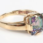 A 9ct gold ring, mounted with a square cut harlequin topaz, weight 3.3g, ring size approx J1/2.