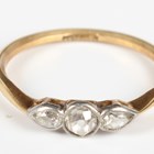 A gold, platinum and diamond three stone ring, detailed '18ct PLAT', weight 2.2g, ring size approx Q.
