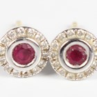A pair of 18ct gold, ruby and diamond cluster earstuds, each mounted with a circular cut ruby within a surround of circular cut diamonds, with post fittings, weight 1.6g, length 1.5cm, cluster diameter 0.6cm.