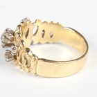 A gold and diamond ring in a pierced bark textured design, claw set at intervals with six graduated circular cut diamonds, detailed ‘18’, weight 6.7g, total diamond weight approx 1.05ct, ring size approx Q.