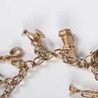 A 9ct gold curblink charm bracelet on a heart shaped padlock clasp, London 1992, fitted with sixteen charms, including a boot, Aladdin's lamp, bicycle, well, artist's palette, scissors and windmill, total weight 35.2g.