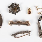 A pair of silver mounted colourless paste pendant earrings, detailed ‘935’, with gilt metal screw fittings, circa 1930s, length 5.5cm, with an associated case, together with four brooches and a pendant.