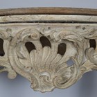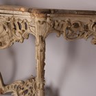 An 18th century Rococo carved softwood console table, the shaped top above a carved foliate base, height 79cm, width 95cm, depth 52cm (faults, overall woodworm).