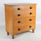 A Victorian scumbled pine chest of drawers with turned and ebonized handles, height 101cm, width 97cm, depth 47cm.