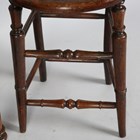 A mid-Victorian stained beech correction chair with finely turned spindle back and caned seat, height 97cm, width 34cm, together with a late Victorian oak hall chair with an inset tile back, height 90cm, width 46cm.