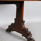 An early Victorian rosewood centre table, in the manner of Gillows of Lancaster, fitted with a single cushion frieze drawer, raised on carved claw feet, height 73cm, width 131cm, depth 68cm (some faults).