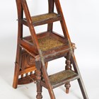 A late Victorian Aesthetic Movement walnut metamorphic library chair, folding to form a set of steps, height 90cm, width 46cm.