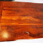 A modern Jacobean style solid yew refectory table, height 76cm, length 196cm, depth 81cm.