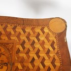 An 18th century French walnut and parquetry veneered centre table, the top inlaid with foliate strapwork and circular reserves, height 67cm, width 93cm, depth 63cm (cut down).