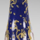 An 18th century Staffordshire enamel scent bottle, both sides painted with Continental harbour scenes on a blue ground, fitted with a gilt metal collar and pierced foliate stopper, height 8.8cm.