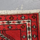 A bokhara rug, mid-20th century, the red field with a geometric lattice, within a thin ivory border, 198cm x 121cm.