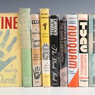 DURRELL, Lawrence. Justine. London: Faber and Faber, 1957. First edition, first impression, 8vo (203 x 126mm.) (Mild toning.) Original red cloth, dust-jacket (price-clipped, browned to spine, slight chipping at top of spine). – And a further twelve volumes by Lawrence Durrell, first editions (including ‘Reflections on a Marine Venus’, 1953, and ‘Clea’, 1960, and ‘Bitter Lemons’, 1957, and a reprint of ‘The Black Book’, signed by the author, 1973, and a reprint of ‘The Dark Labyrinth’, 1961) (13).