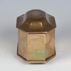 A rare Tibetan ritual conch shell, length 11cm, together with a bronze box and domed cover of octagonal form, length 13.2cm. Provenance: the Alain Presencer Collection.