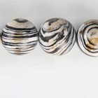 A Sino-Tibetan black and white banded agate spherical bead court necklace, late Qing dynasty, comprising one hundred and eight beads, with red and black bead spacers hung with glass pendants, length 177cm, contained within a Tibetan bronze cylindrical box and cover, diameter 12.5cm. Provenance: the Alain Presencer Collection.