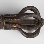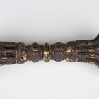 A Tibetan iron vajra, 15th/16th century, with gilt detail, of typical form with crown ends, length 24.8cm. Provenance: the Alain Presencer Collection.