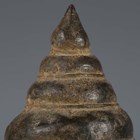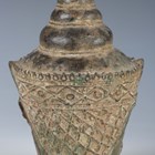 A Thai bronze Buddha head, 14th century, cast with eyes closed, beneath an ornate headdress and domed usnisa, height 18.5cm, raised on a black metal cube plinth. Provenance: the Alain Presencer Collection.