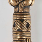 A Tibetan bronze phurba, probably 18th century, with cast figural zoomorphic handle, the mouth of Makala issuing a three-sided tapering blade, length 21.3cm, together with a smaller silvered iron phurba with faceted knop handle and three-sided tapering blade, length 15cm. Provenance: the Alain Presencer Collection.