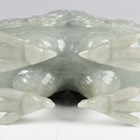A Chinese pale celadon jade cockerel vase and cover, 20th century, carved in the form of two conjoined cockerels standing back to back, supporting a spade shaped vase with cockerel head handles and cover, height 19.5cm, with wire inlaid hardwood stand, total height 23.2cm.