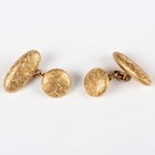 A pair of gold cufflinks, each with a circular front and oval back, with engraved feather spray decoration, detailed ‘18ct’, weight 7.9g, diameter of each front 1.2cm, length of each back 2cm.