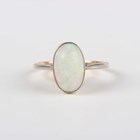 A gold ring, collet set with an oval opal, detailed ‘18ct’, weight 2.7g, ring size approx N.