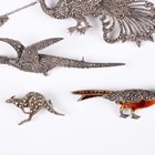 A group of silver and marcasite jewellery, comprising an enamelled pendant on a neckchain, three bird brooches, a poodle brooch and a kangaroo brooch.