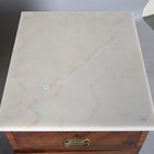 A pair of mahogany and marble-topped bedside cabinets, formed from Regency sideboard pedestals, height 73cm, width 43.5cm, depth 49cm.