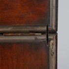 A late 20th century hardwood and brass bound campaign style drinks cabinet, the double-hinged top opening to reveal a rising compartment, height 106cm, width 62cm, depth 42cm.