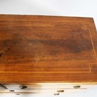 An 18th century French walnut and line inlaid commode, fitted with an arrangement of drawers, height 85cm, width 109cm, depth 43cm.