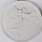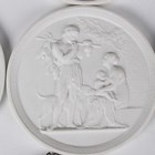 Eleven Royal Copenhagen bisque porcelain circular plaques, circa 1970, including two pairs depicting Night and Day after Thorvaldsen, the others each with Classical figures, various underglaze blue, printed and impressed marks to bases, diameter of largest 15cm, one boxed.