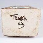 A Newlyn Troika Pottery Coffin vase, 1976-81, decorated by Louise Jinks, monogrammed, black painted mark and monogram to base, height 17cm.