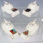 Ten WWI crested china Zeppelin models, including examples by Willow Art with Falmouth crest and Corona China with Birmingham crest, and six crested china armoured car military vehicles.