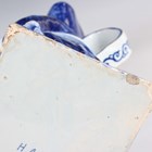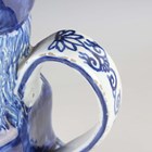 A Dutch Delft pottery blue and white Toby jug, probably early 19th century, modelled seated holding a jug of ale in his right hand, his left hand raised, the lower part of his chair with floral decoration, the base of angular shape, blue painted 'HVH' mark to underside of base in manner of Hendrik van Hoorn, height 30cm (minor faults).