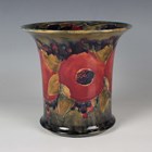 A Moorcroft Pottery Pomegranate pattern vase, circa 1916, with mottled green or ochre ground, impressed marks to base with green painted signature, height 17cm.