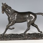 After Iréné Rochard - a 20th century patinated cast bronze model of a horse, the base bearing cast signature, length 26cm, raised on a wooden plinth.