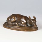 Antoine-Louis Barye - a 19th century French brown patinated cast bronze model of a recumbent faun, the base bearing cast signature, length 9cm.