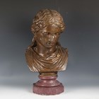 After the antique - a 20th century painted plaster head and shoulders bust of a classical female, raised on a marble effect base, height 47cm.