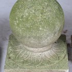 An early 20th century terracotta garden ball finial, on a square base, height 54cm, width 30cm, together with three other cast stone ball finials.