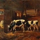 British School (19th century) - Cattle in a barn, oil on canvas, 43.5cm x 55cm, within a gilt composition frame.