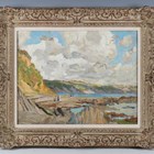 Circle of John Anthony Park (British 1880-1962) - 'Looe, Cornwall', oil on canvas, bears inscription on frame verso, 37cm x 46cm, within a swept painted frame.