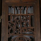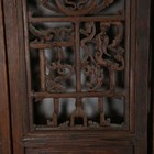A Chinese softwood five-fold dressing screen, the pierced panels above relief carved decoration, height 220cm, width 240cm.