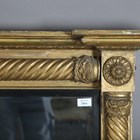 A Regency giltwood overmantel mirror, the spiral fluted pilasters ornamented with foliate bands, height 84cm, width 142cm.