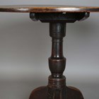 A George III provincial oak tip-top supper table, raised on tripod legs, height 71cm, diameter 86cm.