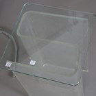 A modern chromium plated and clear glass occasional table, height 53cm, diameter 45cm, together with another similar table, height 55cm, diameter 40cm, and two perspex tables with glass tops.