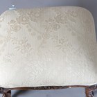A Victorian walnut stool, upholstered in cream damask, on carved cabriole legs and castors, height 34cm, width 49cm, depth 41cm.