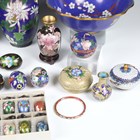 A collection of late 20th century Chinese cloisonné items, including vases and bowls, together with a small group of porcelain.