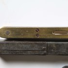 Two 19th century steel mounted woodworking planes, together with a mahogany and brass mounted spirit level, a 19th century drawing instrument set, a set of postal scales and an 18th century balance scale.